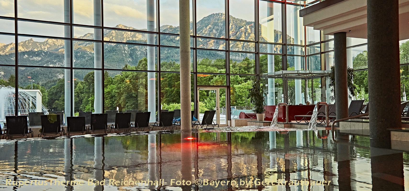 Die RupertusTherme in der Alpenstadt Bad Reichenhall wurde vom ersten Tag an begeistert aufgenommen. Eine moderne lichtoffene Architektur und eine klare Ausrichtung auf Wellness und Entspannung finden bis heute viel Zuspruch, auch aus dem Großraum Salzburg und dem nahen Chiemgau. Als Alleinstellungsmerkmal setzt die RupertusTherme auf den natürlichen Bodenschatz Alpensole, wie er der alten Salinenstadt über Jahrhunderte zu Ansehen und Reichtum verholfen hat. Umgewandelt auf die moderne Therme passt der Slogen „Quelle meines Wohlbefindens“ ausgezeichnet dazu.