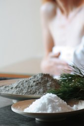 Ein Salzabrieb im heißen Dampfbad erfrischt und fördert die Durchblutung