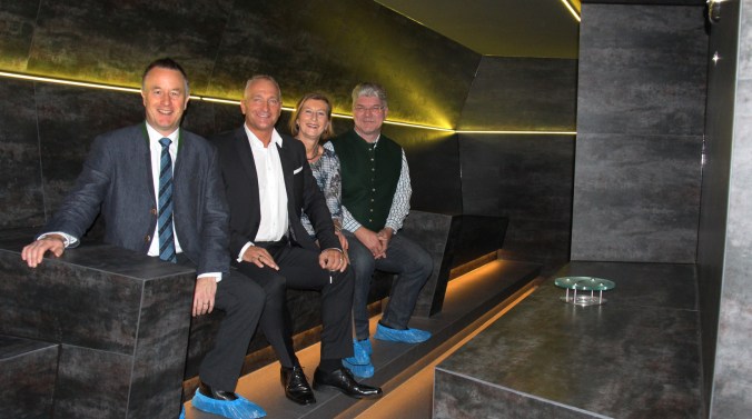 Freude über das neue Raumkonzept für Dampfbad und Whirlpool der RupertusTherme in Bad Reichenhall bei (v.l.): Oberbürgermeister Dr. Herbert Lackner, Thermen-Geschäftsführer Dirk Sasse, KurGmbH-Geschäftsführerin Gabriella Squarra und Armin Wierer, Bürgermeister von Bayerisch Gmain.