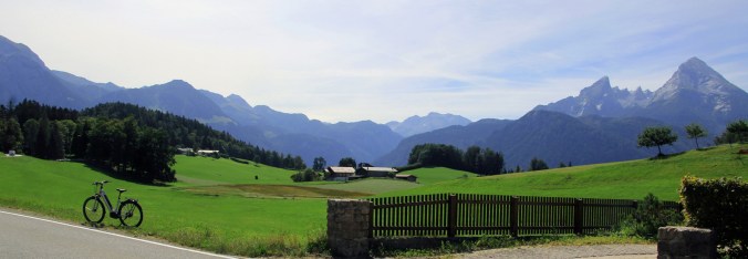 Steil bergab führt uns die Straße vom Doktorberg dann direkt zum Schlossplatz von Berchtesgaden. Was für eine großartige Kulisse nach all den naturgewaltigen Eindrücken. Wir füllen unsere Flaschen am plätschernden Trinkbrunnen wieder auf und gönnen uns wenige hundert Meter weiter in der Fußgängerzone am Marktbrunnen eine längere Rast und einen italienischen Cappuchino, beobachteten ein wenig das Treiben von Gästen und Einheimischen. Ja, die Tour hat sich bis jetzt auf alle Fälle gelohnt, so unser Zwischenfazit. Das E-Bike eröffnet neue Möglichkeiten „des Reisens“, wenn auch auf die Region und Radwege beschränkt. Ein Aktionsradius von bis zu 150 Kilometer soll nach Herstellerangaben möglich sein. Am Schluss unserer Tour von etwa 40 Kilometern zeigte der Akku immer noch 60 Prozent Leistung an, wir sind allerdings durchwegs mit der Einstellung „Sport“ geradelt, haben dem Motor seine höchste Leistung abverlangt und eine Höhendifferenz für die Gesamtstrecke von rund 500 Metern überwunden.