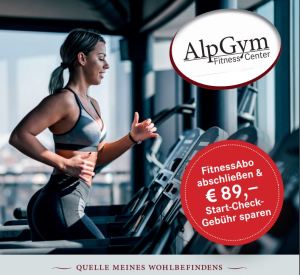 Mit dem Fitness-Center wird die RupertusTherme zu einer Quelle der Energie, der Lebensenergie. Im AlpGym Fitnesscenter trainieren Sie in einer sehr angenehmen und stilvollen Atmosphäre. Die einmalige Architektur mit viel Augenmaß für das Detail und ein wunderschöner Blick in die Natur durch hohe Fensterfronten begeistert die Besucher immer wieder. Die TechnoGym-Geräteausstattung zählt nach sportwissenschaftlichen Erkenntnissen und technischen Möglichkeiten zu den modernsten überhaupt. Zudem genießen Sie alle Vorzüge der Thermen- und Saunalandschaft.