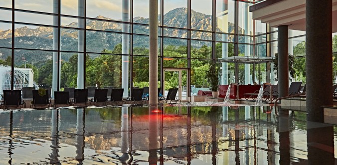 Romantische Stimmung und ein unvergleichbares Bergpanorama in der Rupertustherme in Bad Reichenhall